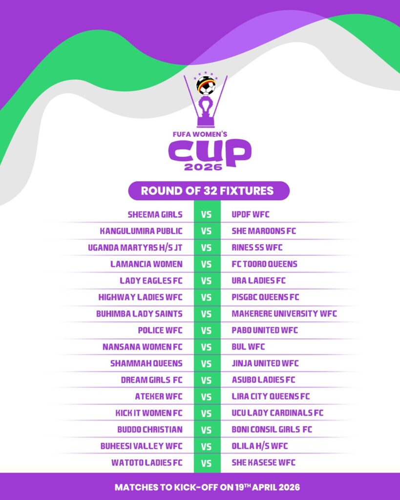 Last year’s quarterfinalists have been granted a bye to the round of 16. These include Amus College, Kawempe Muslim, Uganda Martyrs Lubaga WFC, Kampala Queens, Lady Doves, St Noa, She Corporate, and Wakiso Hill WFC, all of whom reached the last eight in the previous edition.